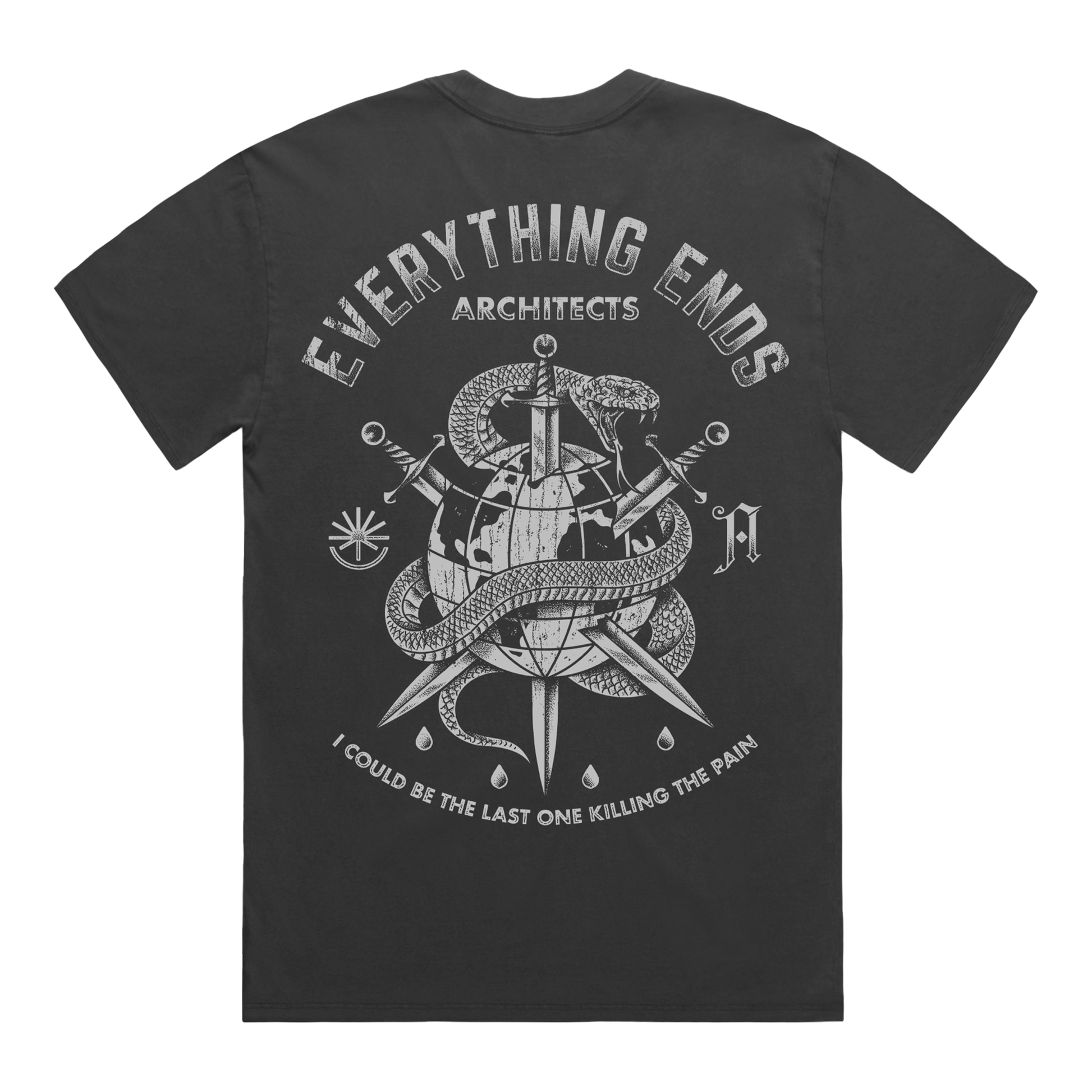 - Architects 'Everything Ends' globe and snake print across the front and back